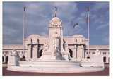 B-0340 USA - DC - Washington Inscriptions: (r) Columbus Memorial Fountain in front of Union Station, Washington, D.C. (v) No. 61487.-The Columbus Memorial Fountain, Washington, D.C., is situated on the Union Station Plaza. It is semi-circular in form, seventy feet wide anmd sixty-five feet deep. A shaft forty-five feet high surmounted by a globe borne by four eagles forms the background for the statue of Columbus, who is represented as standing on the prow of a ship, the figure-head of which is a beautiful female figure typifying 'The Spirit of Discovery'. On the left of the shaft is the figure of an Indian portraying the New World, and on the right side the figure of a patriarcal Caucasian representing the Old World, while the rear of the shaft carries a medaillon representing Ferdinand and Isabella of Spain. The extreme ends are flanked by two enormous lions. Dedicated June the 8th, 1912. Sculptor, Lorado Taft; Cost,, $100,000. Publisher: W.B. Garrison, Washington, D.C. Numbering: 61487 More information on our Columbus Monument Pages |