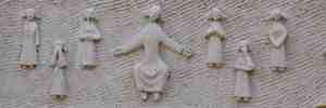 | In de fries zijn de eretitels van Maria afgebeeld zoals die in de Litanie van Loreto worden gebeden Klik op foto voor vergroting |