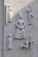 Voor het monument is gebruik gemaakt van een kunstwerk uit de Mariakapel in de St. Vituskerk, dat bij een herinrichting in 2004 moest verdwijnen. Dat kunstwerk, waarschijnlijk besteld door Pastoor Jongerius aan het eind van zijn leven (1959/1960), kwam eigenlijk nooit goed tot zijn recht in de wat schemerige Mariakapel. Het stond donker opgesteld en de Mariaicoon was een beetje weggestopt. Omdat in de fries de eretitels van Maria staan is het bewaard en van een plaquette voor de zusters Dominicanessen voorzien.