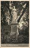 Stenen beeld van een vrouwenfiguur ("Venus", bijgenaamd 'Naatje') met weversklos en rollen garen.