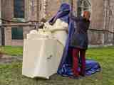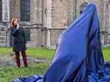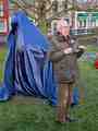 Na toespraken door en Albert Blankert van de Stiching Johannes Vermeer, Wim van Leeuwen, van het VermeerCentrum Delft, en Milene Junius, wethouder van o.a. cultuur, is het doek van het beeld gehaald door Wim T. Schippers, geassisteerd door de wethouder.