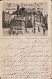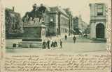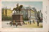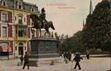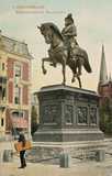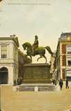 Ruiterstandbeeld op een met brons en marmer bekleed voetstuk.