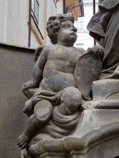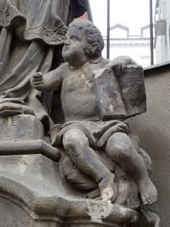Svatý Jan Nepomucký s andĕlySaint John of Nepomuk with angelsNepomuk c. 1345 - Praha 1393confessor of the queen of Bohemia, refused to divulge the secrets of the confessional. At the behest of King Wenceslaus of Bohemia he was thrown from the Charles Bridge in Prague and drowned. John of Nepomuk is patron saint of bridges (Wikipedia) |
