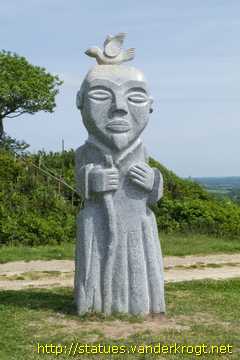 The Valley of the Saints project aims to install one thousand three-metre high statues of the Breton saints at Carnoët in an attempt to celebrate and preserve the identity of the region. Statues of twenty saints were placed when we visited the site on 29 May 2012. At present (November 2016) there are about 80 statues placed, and others are under construction. The statues are placed on the Butte de Saint-Guildas, a hilltop (the name Vallée des Saints is therefore misleading!)