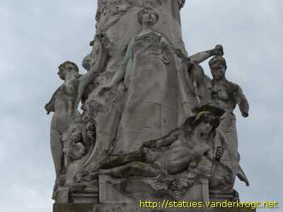La fontaine fut érigée en 1908 (oeuvre d'André Narjoux) grâce au legs de l'industriel rémois Auguste Subé. Le monument présente les quatre rivières locales: la Vesle, l'Aisne, la Suippe et la Marne. Quatre autres groupes sculptés très endommagés au cours de la Première Guerre mondiale représentent des métiers. Au sommet de la fontaine, un bronze, la "Renommée" enlevée en 1942 par l'Occupant, a été remplacé par une "Victoire". |