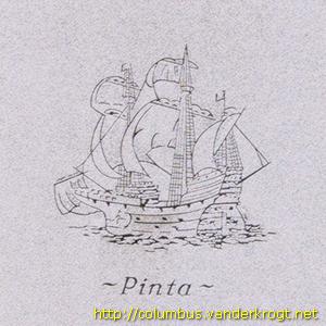 In the center of a circular brick planter stands a wide obelisk adorned with bronze inscription plaques and incised with images of Columbus' three ships, the Nina, Pinta, and Santa Maria. The planter is surrounded by a wrought iron fence.