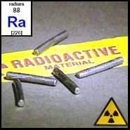 On 26 December 1898, Pierre and Marie Curie announced the discovery of this element. It had been distinguished from Polonium due to the likeliness of its chemical properties with those of Barium. Its sulfate and carbonate were insoluble and the chloride was soluble in water but insoluble in hydrochloride acid or in alcohol. However, this element was not identical to Barium, and could easily be separated. They named it Radium, after the Latin radius = ray, because the radiation is 3 millions times as much as that of Uranium (note).