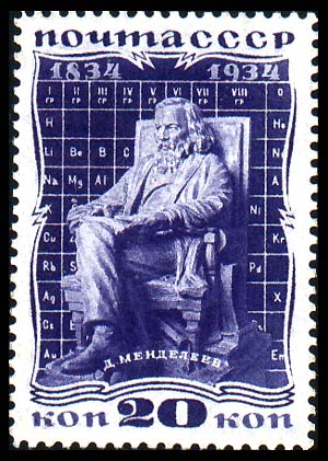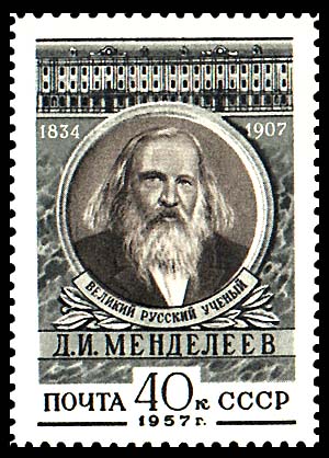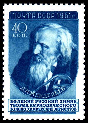 Дмитрий Иванович Менделеев (Dmitrij Ivanovič Mendeleev)(Verhnie Aremzyani village, near Tobolsk, 8 February [O.S. 27 January] 1834 – Saint Petersburg 2 February [O.S. 20 January] 1907), Russian chemist and inventor. Between 1859 and 1861, he worked on the capillarity of liquids and the workings of the spectroscope in Heidelberg. In late August 1861 he wrote his first book on the spectroscope. He became Professor of Chemistry at the Saint Petersburg Technological Institute and Saint Petersburg State University in 1863. In 1865 he became Doctor of Science for his dissertation "On the Combinations of Water with Alcohol". He achieved tenure in 1867, and by 1871 had transformed Saint Petersburg into an internationally recognized center for chemistry research. Though Mendeleev was widely honored by scientific organizations all over Europe, including the Copley Medal from the Royal Society of London, he resigned from Saint Petersburg University on 17 August 1890.