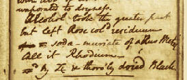 RHODIUM, Platinum's natural ally, A metal of almost silver-white hue, Is hard to fuese yet very mall'able; Insoluble per se in all Acids, Though Aqua Regia dissolves its alloys.