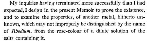 Although in undated notebooks Wollaston refers to it as "N-novm" (perhaps Novum). He published details of this discovery immediately after its isolation; apparently he had no desire to initiate a second dispute, as with Palladium.