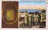 The left section of the postcard shows the tablet with the text (in translation): IN MEMORIAM. The Government of Spain removed the ashes of the Great Admiral Don Christopher Columbus from the Republic of Santo Domingo and were deposited in this place the 19th of January, 1796. The same Government, upon cessation of its sovereignty over this Republic, removed them on the 26th of September, 1898, to the Catherdral of Seville.