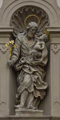 Sochy svatých na kostel Svatého Jana NepomuckéhoSaint statues at the Church of Saint John of Nepomuk |