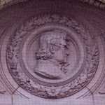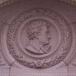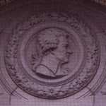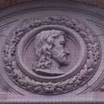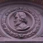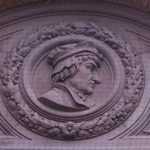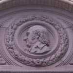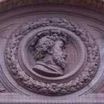 Decorations include portraits of artists and allegorical groups of figures.
