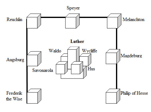 On the corners behind Luther, two important Protestant scholars