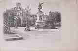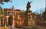 "In this pose the Discoverer points the way to new discoveries and symbolizes the era in which Santo Domingo, the historic name of this island, was the capital of the Spanish Empire. In the background is the ancient Cathedral of Santo Domingo in which the Great Admiral is buried." (quote from the verso of one of the postcards).