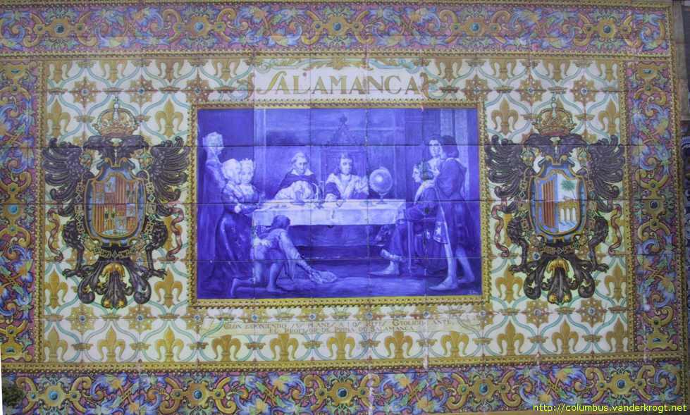 Salamanca: Colón exponiendo sus planes a los Reyes Catolicos ante el Profesor de Prima de Salamanca. |