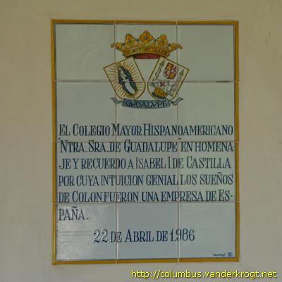 (The Hispano-American Grand College "Our Lady of Guadelupe" in tribute and memory to Isabel I of Castile whose briljant intuition the dreams of Columbus were a company of Spain. 22 April 1986"Ntra. Sra. De Guadelupe" en homena- je y recuerdo a Isabel I de Castilla por cuya intuicion genial los sueños de Colon fueron una empresa de Es- paña. 22 de Abril de 1.986. N.B. The Colegio Mayor Hispanoamericano Nuestra Señora de Guadalupe is located in the university center of Madrid) |