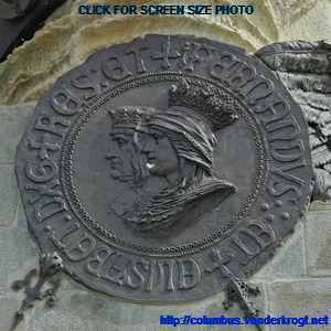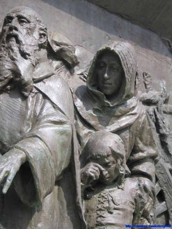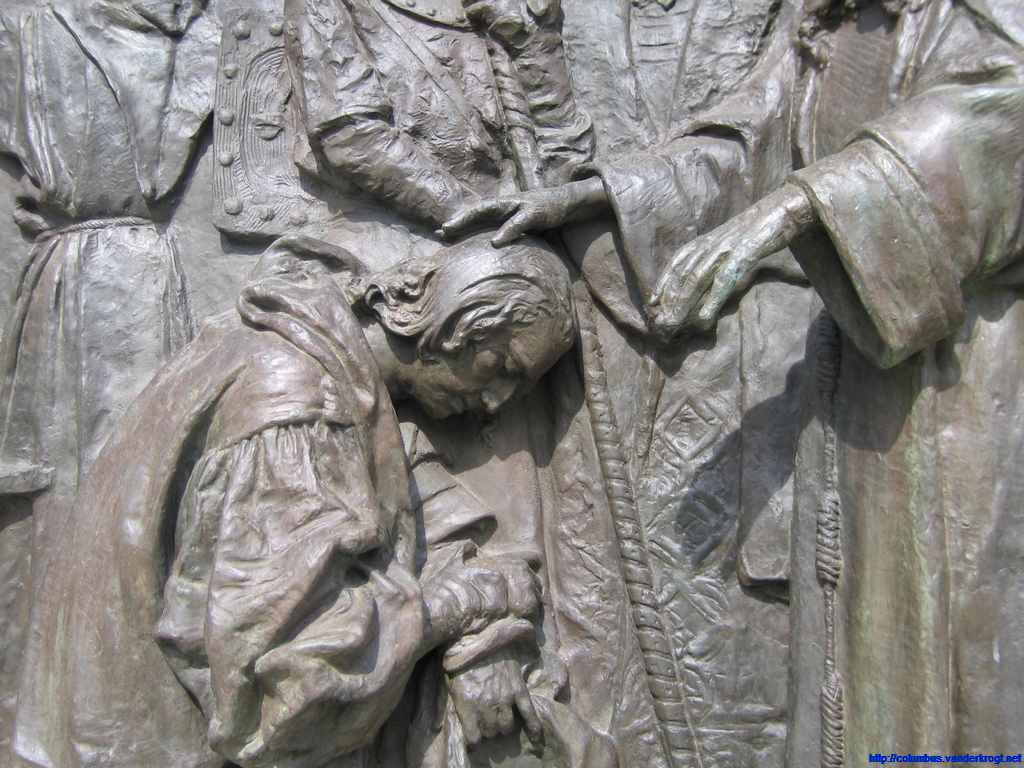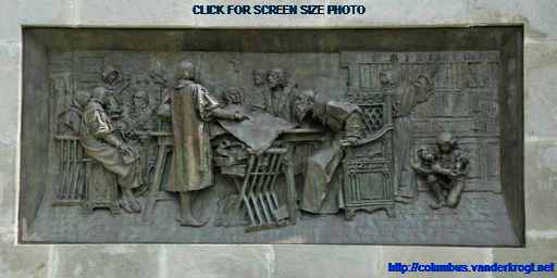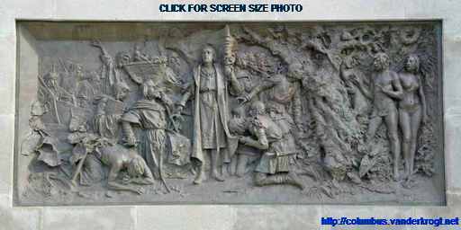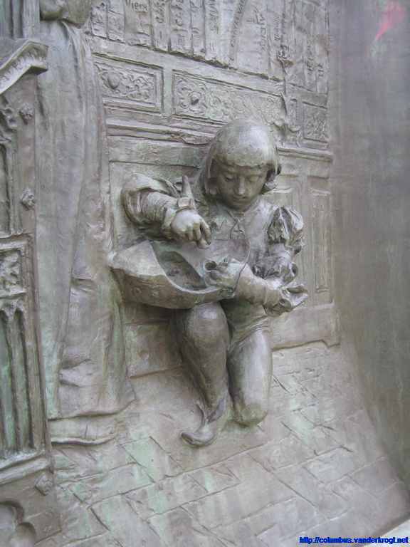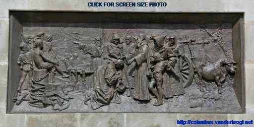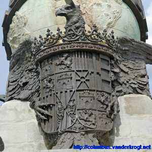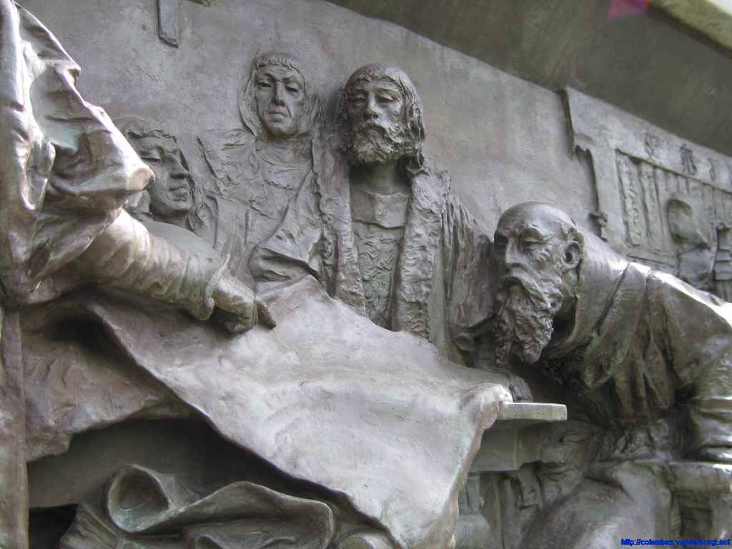 On the top of the monument is a barge battered by the winds and waves. On this barge stands Faith, guiding Christopher Columbus, as a symbol that the New World has been discovered under the ęgis of the Cross.