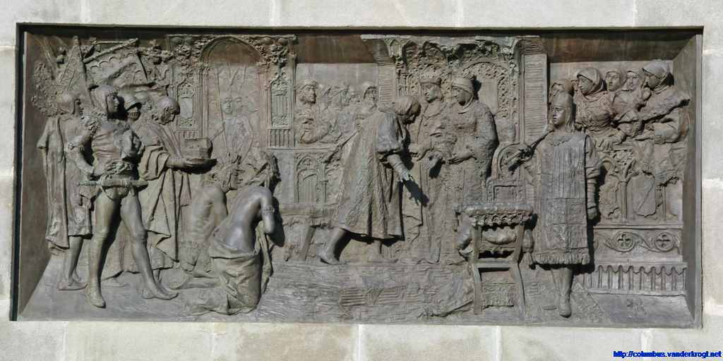 A Spanish royal order of the Overseas Ministry of 26 February 1891 announced a contest among Spanish artists of projects for the construction of a sepulchre (see Sevilla) and of a monument commemorative of the discovery of America, which was to be errected at a park of Havana, Cuba. The sculptor Don Antonio Susillo won the prize of 100,000 pesos, as verifited by Royal order of 11 July 1901. In the mean time, however, Spain lost its overseas colony of Cuba and the monument stayed in Spain, to be exact in Valladolid. The monument was inaugurated on 15 September 1905.