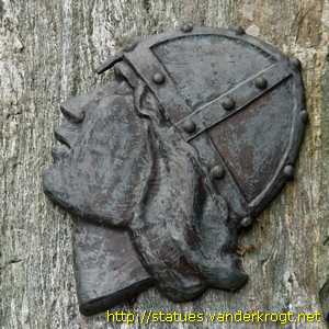 On a stone at the foot of the pedestal with shield: