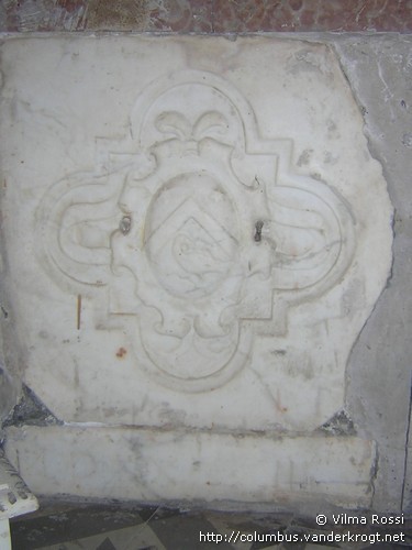 The family tomb in the S. Stefano church shows the coat of arms of the Colombo family of Chiusanico with a pigeon (it.: colombo).