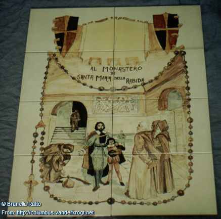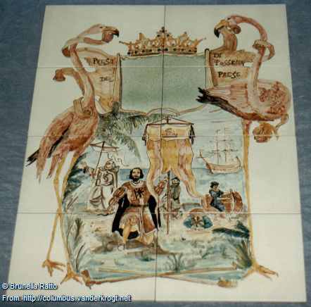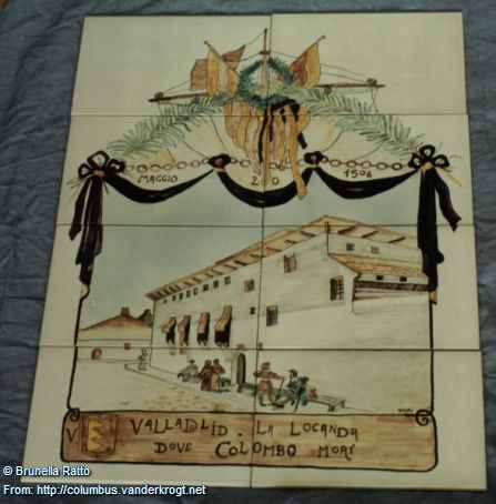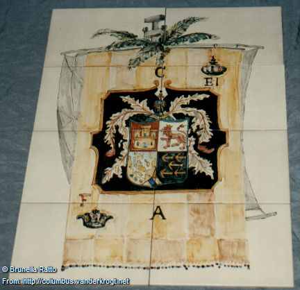 We visited Cogoleto on 8 August 2001. The "birth house" is closed for public, but has a huge fresco on the façade and plaques on front and back side. A friendly town official in the town hall guided me to the mayor's room, where a painted portrait of Columbus and some documents hang. If the portrait is the same as described by Ponce de Léon, it is now thoroughly restored, because it looks new to me. In the hall of the same building is a model of the Santa Maria. One of the main streets is of course named Via Cristoforo Colombo.