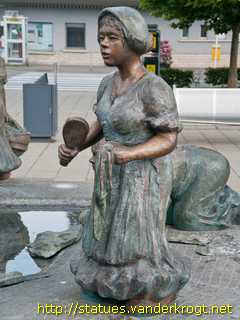 The bronze figures refer to the public washing facility once located on today's ship-landing stage, where the river bank is slightly sloped - the site of much gossip in bygone days.